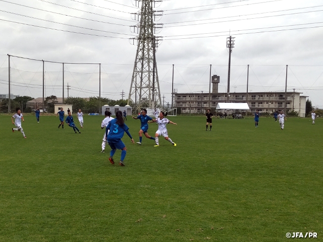 後半に入った50分、後半開始から途中出場したFW津田愛乃音選手とMF福島望愛選手が魅せます。左サイドの津田選手が逆サイドの福島選手へサイドチェンジすると、福島選手がそのままドリブルで持ち込みシュート。これが決まり、3-0とします。試合終了間際の69分にMF近藤柚月選手が、アディショナルタイムには、FW津田選手がそれぞれ決め、5-0とし、試合を終えました。