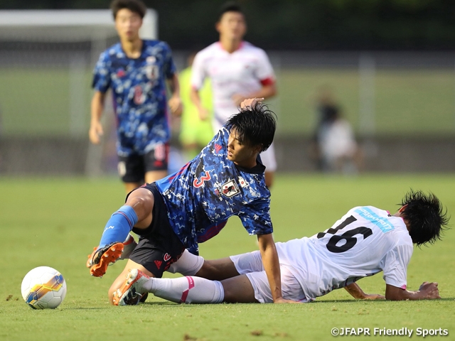 コロナ禍で海外遠征や国際試合ができない中、この様な素晴らしい大会に参加できてとても嬉しく思います。昨年、U-16日本代表として参加したSBSカップドリームユースサッカー大会に選ばれず、悔しい思いをしましたので、今回招集されて、非常にモチベーション高く参加しています。チームが良い結果を出すためにも、後ろからチームを引っ張り勝利に貢献したいです。サガン鳥栖U-18との初戦を終えてみて、結果は2-0と勝利することができて嬉しく思います。試合前のミーティングでも初戦を落としてしまうと厳しい戦いになる、と話していて、チーム全員が勝利に向けて準備した結果だと思います。攻撃は前からプレスにくる相手に対して剥がしていける場面もありましたが、相手を見てロングボールを使うのか、下から繋いでいくのかの判断のところは、もっともっと磨かないといけないと思いました。守備では、後半雷雨で試合が中断した後の場面、攻め込まれる時間が長くなりましたが、チーム全体で粘り強く守れたことで追加点が取れたと思います。次戦も簡単な試合にはならないと思いますが、攻撃時の判断のところをもう一度チーム全体で共有をし、チーム全員で戦い勝利を掴みとりたいと思います。