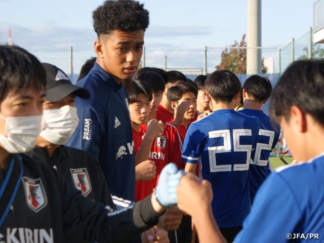U-17日本代表に招集された選手たちには、まずは所属チームで結果を出すことを常に求めてきましたが、今回のキャンプ合流前日に内藤大和選手がヴァンフォーレ甲府のトップチームで初出場、また西野奨太選手もコンサドーレ札幌のトップチームの試合でベンチ入りを果たすなど、所属クラブでもトップチームに関わる選手が出てきており、それを聞いた他の選手にも良い刺激になった様でした。