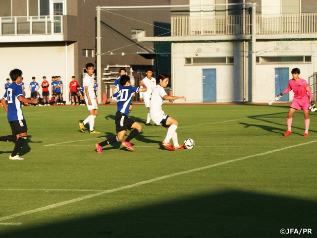 10月26日(火)は関西学生選抜(2年生)とのトレーニングマッチ第1戦(45分×3本)を行いました。海外チームとの対戦が難しい状況の中、関西学生選抜の胸を借り、格上相手にどこまで通用するかを試す試金石となります。U-17日本代表候補は選手を2チームに分け、2本目の半分で選手を入れ替えて戦いました。