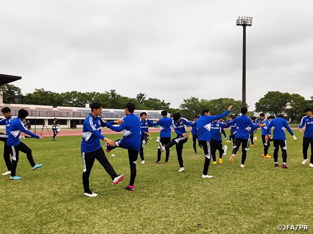 6月7日(水)のチームミーティングで森山佳郎監督から、過去のAFC U17アジアカップ(予選)の突破率が5割であることが伝えられ、「間違いなく厳しい戦いとなる。今回のタイも、大渋滞や豪雨によるピッチ状況など、厳しい環境になるかもしれない。その中でも体を張り、気持ちを込めて戦えるかが問われる。まずはベスト4に入りワールドカップ出場権を獲得すること、そしてアジアチャンピオンとしてワールドカップに出場しよう」と意識を統一し、活動が始まりました。