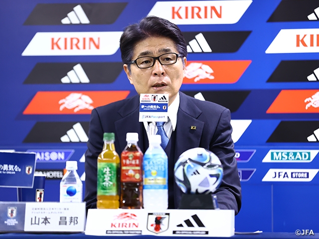 山本昌邦ナショナルチームダイレクターと森山佳郎監督は、会見の冒頭でまずは選手の関係者に感謝の言葉を述べました。山本ダイレクターは「いつも選手のために協力いただいている学校関係者の皆さま、クラブ関係者の皆さまにまずは感謝を申し上げたいと思います」と語り、森山監督は「本当に大事な時期に重要な選手を貸していただき、感謝申し上げます」と述べた上で、次のように語りました。