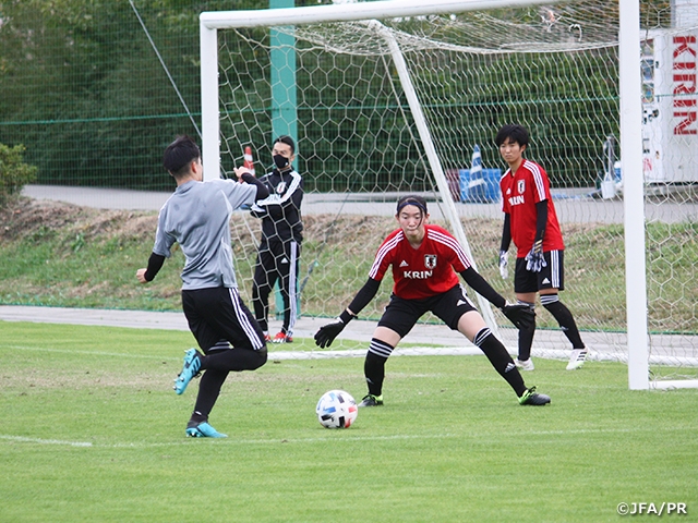まずはコロナ禍の中、Jヴィレッジのスタッフの方々を始め、多くの関係者の方々の支援のおかげで、このような充実した環境で活動ができることに心から感謝しています。私は今回の活動の中で、積極的にトライを繰り返し、たくさんの気づきや学びを積み重ねて、自分の中で少しでも成長できたと思える活動にしたいと思って取り組んでいます。また、27日の午後には男子高校生とのトレーニングマッチがあります。これは全体としても個人としても、今までの活動の1つの指標になると思うので、自分のストロングをたくさん出して、積極的な姿勢を崩さず、自信を持ってぶつかっていこうと思います。そして、トレーニングマッチの反省を残りの活動に生かしていけるようにしたいです。