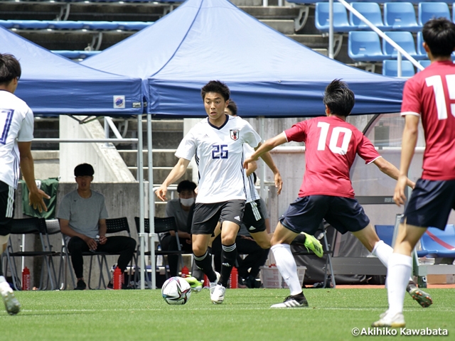 もっとボールを受けて、動かしながら自分たちの時間を作りたかったです。守備では粘り強く良い守備も出来た部分もありましたが、失点をしてしまったのでそこは反省点ですし、行くところ、行かないところの判断や見方を動かしながらチームとして奪う守備が出来なかったのでもっと突き詰めていきたいです。自分の特徴を出しつつ、味方のいいプレーを引き出す難しさを感じる試合でした。大学生と真剣勝負をした事で、プレススピードや対人の強さが一段と早く強いことを実感しました。どんな状況でも100%の力を出すためのメンタリティ、モチベーションの作り方を自分なりに試行していきたいと思います。今回のU-18日本代表は自分としては初招集だったのですが、まず私を選んでくださった大岩剛監督、スタッフの皆様に感謝したいです。そしてこのコロナ禍の中このような活動が出来たことに対してたくさんの方々に感謝申し上げます。今回の活動を通して、パススピード、プレースピード、判断スピード、全てにおいて今まで自分がやってきたスピード感を凌駕するものがありました。止める、蹴るといった基礎的な技術が高く、当たり前のレベルが高いと感じました。普段のトレーニングからもっと高い意識を持って取り組んでいきたいと思います。大岩剛監督に「常に胸を張って自信を持ったプレーをしなさい」と、言われた言葉は強く印象に残りました。日本代表はそういう選手が集まる場所なんだと強く思いました。ミスをして下を向くような選手では上ではやっていけない、失敗に気付きを持ち、次はどうするかを常に考え、どんどんチャレンジしていくことが大切だと感じました。2年後のFIFA U-20ワールドカップの舞台で、自分がそこのピッチに立ち、世界の選手たちと戦い、勝つんだという強い気持ちを抱きました。その舞台で戦うために意識レベルから変えていきたいと思います。