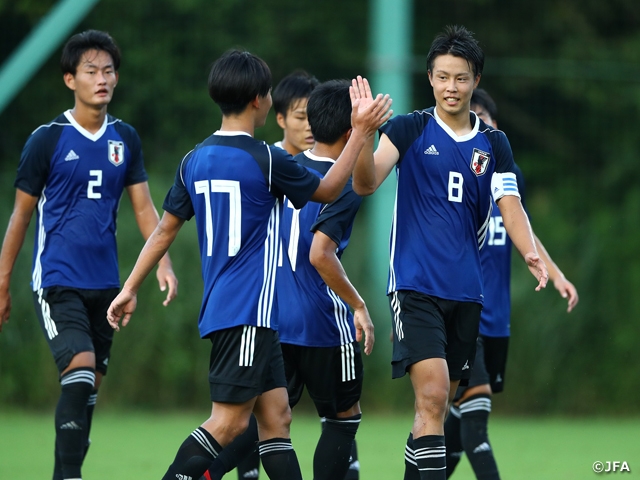 個人としては今年2回目の代表活動ですが、今回大阪で緊急事態宣言が発令している中で参加させてもらえたことにとても感謝しています。何不自由なくサッカーができるというのは、当たり前ではない幸せなことだということを、身に染みて感じています。今日の試合は、後半45分のみの出場で、前半は外から相手の特徴を見ることができたので、自分が何をすべきなのかを明確に理解した状態で臨めたのもあり、2アシストと自分の特徴を上手く出せたと思います。しかし、シュートの精度を欠いてしまい、自らが得点を取ることができませんでした。個人としては課題が出た試合でしたが、チームとしては3得点無失点と、根気強く闘えていたと思います。中一日で仙台大学と試合がありますが、チームとしては今日以上に得点を上げ、クリーンシートで終わること、個人としては最後の質をより高めてゴールに絡むことを意識してプレーしたいと思います。最後に、チームメイト全員に、坂本一彩選手と一緒に誕生日を祝っていただき、大変感謝しています。