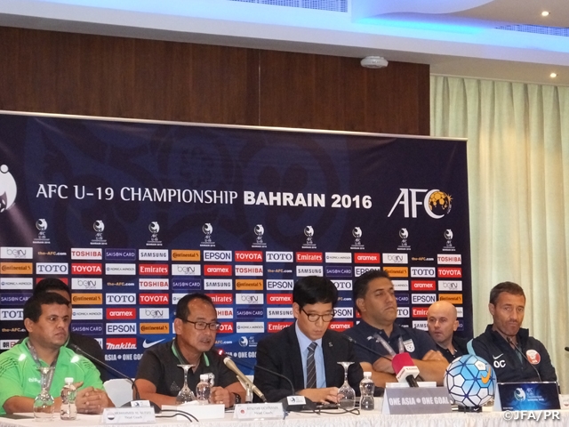 AFC U-19選手権バーレーン2016の初戦となるU-19イエメン代表戦をいよいよ明日に控えたU-19日本代表。14日の正午過ぎ、グループCの4チームの監督による合同の公式記者会見が行われ、日本からは内山篤監督が出席しました。どの監督からも口を揃えて初戦の重要性が語られ、明日の試合に向けての意気込みをそれぞれ述べました。