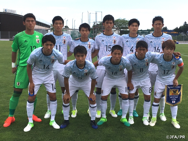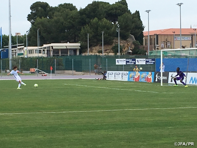 第45回トゥーロン国際大会2017に出場しているU-19日本代表は6月1日(木)、初戦から大幅にメンバーを入れ替え、グループステージ第2戦U-20アンゴラ代表との試合に臨みました。この日は試合前に雨が降り、初戦と比べだいぶ日差しも弱く、涼しくプレーしやすいコンディションの中でのキックオフとなりました。第1戦でキューバに対し惜しくも勝ちを逃し、引き分けで終わった日本はアンゴラ戦には絶対に勝ち切るという気持ちで試合に入り、試合序盤から相手ディフェンス陣に前線の選手たちがプレッシャーをかけていきます。