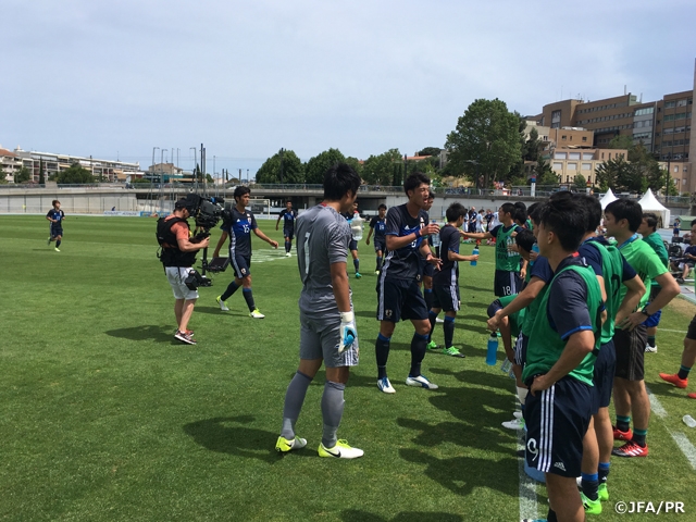 同点に追いつきたい日本は、攻撃を緩めることなく攻め続け、39分には左サイドから田中陸選手が上げたグラウンダーのクロスを中央の黒川淳史選手がスルー、走り込んだ田中康介選手がシュートを放つもゴール上にボールがそれてしまうなど、良い形は作れている中でなかなかゴールを決め切れず前半が終了します。