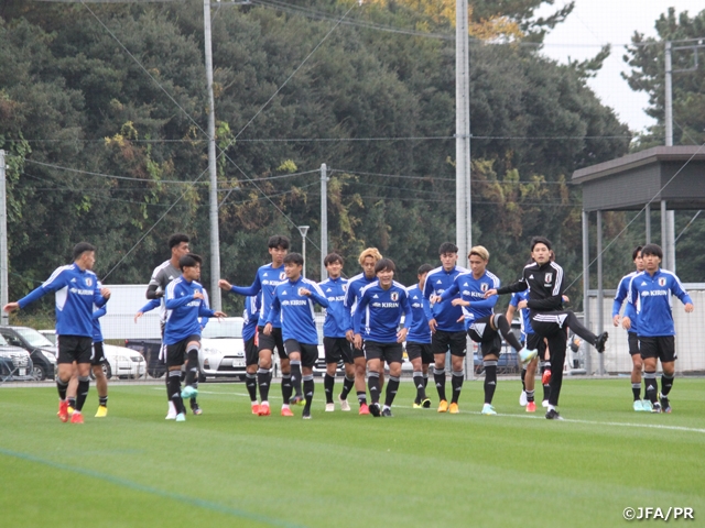 スペインに遠征するU-19日本代表は13日(日)、千葉県内で集合し、渡航前にトレーニングを行いました。