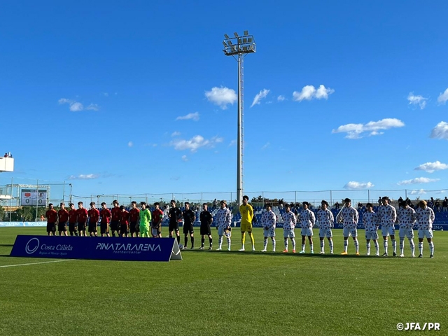 スペインに遠征しているU-19日本代表は19日(土)、スペインのピナタル・アリーナにて、U-18スペイン代表との試合を行い、前半で選手1名が退場となった中で1-0にて勝利を収めました。