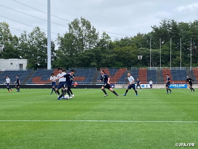 前回から引き続き、コロナ禍のなかU-19代表候補キャンプに参加できたこと、サッカーにより集中できる環境を作っていただけていることに感謝しています。さらに、幼馴染である片山選手とこの場所でまた一緒にプレーできたことが嬉しかったです。練習試合では、フィジカル面での勝負では難しく、距離感や駆け引きの重要性を強く感じました。その中でも3得点に加え、ゴールに向かうシーンや粘り強い守備など次につながるような試合をでき、勝ち切れたことが良かったと思います。今回出た課題を改善し、チームとしても個人としてもレベルアップしていきます。