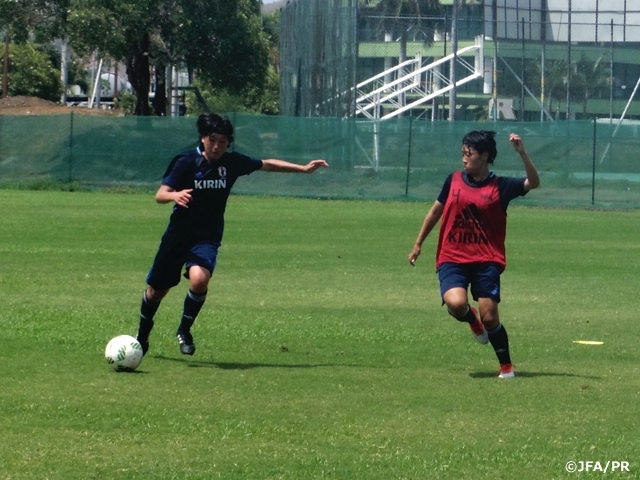 FIFA U-20女子ワールドカップ パプアニューギニア2016 初戦のナイジェリア戦で6-0の勝利を収めたU-20日本女子代表は14日(月)、前日の試合で先発出場した選手たちと控えの選手たちの2グループに分かれて練習を行いました。先発組はホテルでリカバリートレーニングを行い、それ以外の選手たちはグラウンドに移動。ウォーミングアップの後はパス&コントロール、5対3のポゼッション、最後は5対5のゲームまで約1時間半、しっかりと汗を流しました。高倉麻子監督は「ナイジェリア戦はボールも人も動いて良いゲームができた。課題は攻撃の最後の精度。まだまだ通過点なので、チーム全体でレベルアップしていきたい」と前日の試合を振り返り、16日(水)のU-20スペイン女子代表との試合に向けて、さらにチームの力を高めていく決意を述べました。