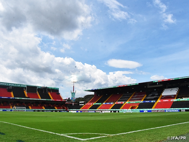 9日(火)には初戦、U-20オランダ女子代表との試合会場であるEstadio Alejandro Morera Sotoで公式練習を実施。トレーニングを行うことはもちろん、初めて試合会場に足を踏み入れ、芝生の感触やスタジアムの雰囲気、会場内の動線などを肌で感じました。夕方には池田太監督が公式会見に臨み、同じグループDの監督と一堂に会し、大会に向けての意気込みを語りました。初戦で対戦するオランダの印象を問われ「組織的でオーガナイズされたチーム。その上で個々でもスピードや展開力のある選手がいて、スペシャリティがある」と話すと、オランダ・TORNY Jessica監督は日本を「細部にこだわりを持ったチーム」と評し、「他のすべての試合と同じように、日本戦も決勝のつもりで戦う」と意気込みました。