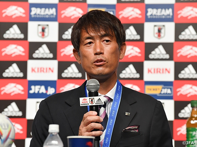 選手たちを支えてくださっている所属チームの方々、小さい頃からサッカーを指導していただいた指導者の皆様、保護者の皆様、関わってきていただいた方々に感謝申し上げます。パンデミックの影響で活動が思うようにいかなかった中でも選手は日々努力し、大会の中で成長してくれました。この年代でも各国が組織的にオーガナイズされた、しっかりと整ったサッカーを目指す中で、個の能力の高い選手が各ポジションにいました。技術もスピードもあり、準備段階で相手の特徴をどう捉えるかというところにフォーカスして相手を分析しました。その対策を選手たちがしっかりと理解し、短い時間で対応する適応力はこのチームの強みだったと思います。