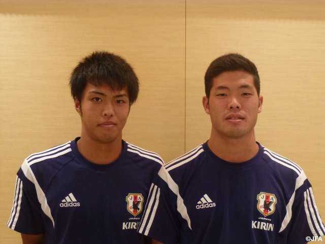 なお、今回は大会登録選手20名のほか、6月に全日本大学選抜の選手としてU-21代表と練習試合で対戦した湯澤聖人選手(流通経済大、写真右)と澤上竜二選手(大阪体育大、同左)の大学生が日本でのトレーニングキャンプに参加。2人ともとてもいい刺激になったようで、今後の代表入りを誓い、それぞれ自分のチームに戻りました。
