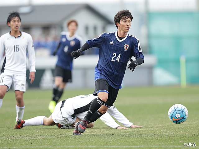 1月9日(火)に開幕するAFC U-23選手権中国2018を前に、U-21日本代表は5日(金)、全日本大学選抜と練習試合を行いました。この日チームに合流した遠藤渓太選手、コンディションを考慮してベンチ入りを見送られた初瀬亮選手を除く全選手が出場しました。