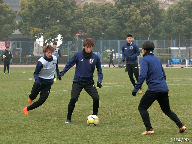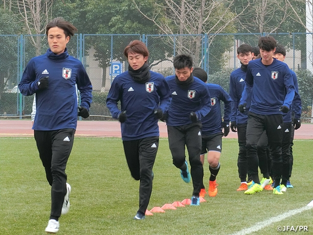 U-21日本代表は18日(木)、AFC U-23選手権中国2018の準々決勝・対U-23ウズベキスタン代表戦を翌日に控え、中国の江陰市で午前中にトレーニングを行いました。