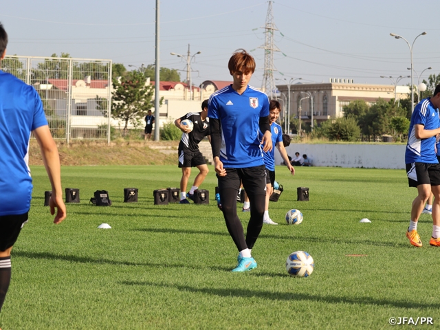 AFC U23アジアカップウズベキスタン2022の準決勝を翌日に控えたU-21日本代表は14日(火)、試合に先がけて実施された公式会見に大岩剛監督とFW細谷真大選手が登壇し、午後のトレーニングは非公開で実施しました。