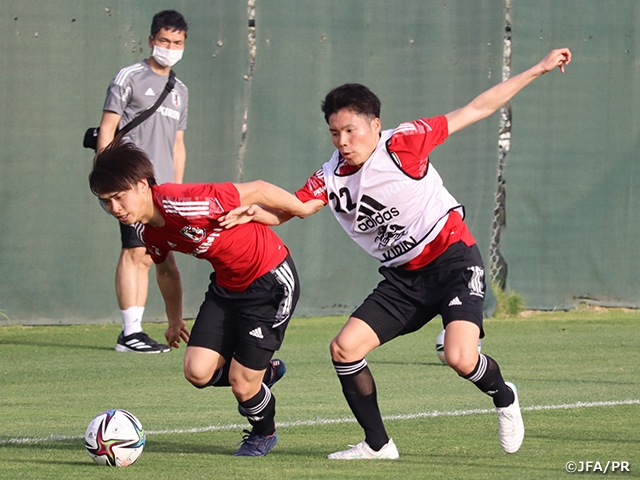 アラブ首長国連邦(UAE)で開催されているドバイカップU-23に出場中のU-21日本代表は25日(金)、翌日に控える大会第2戦のカタール戦に向けてチーム練習を行いました。