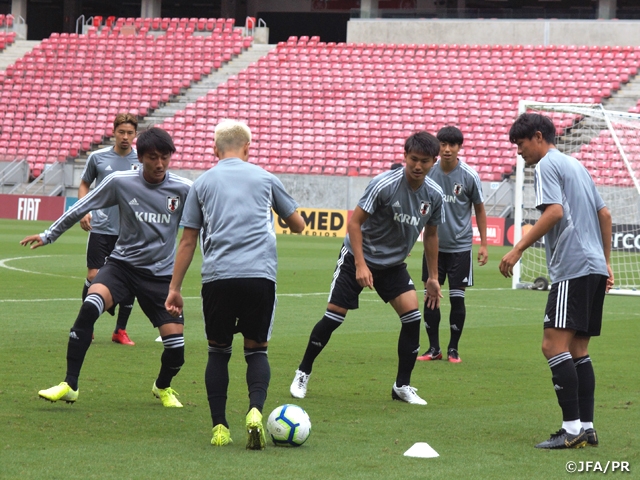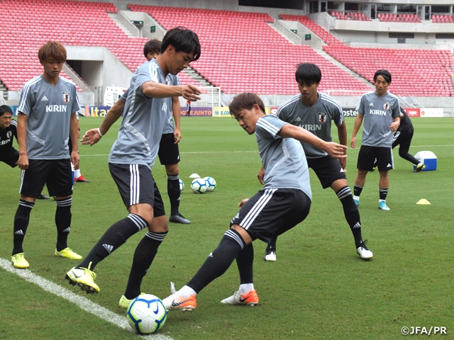U-22ブラジル代表との国際親善試合を翌日に控え、U-22日本代表は13日(日)、試合会場のArena Pernambucoで1時間の公式練習に臨みました。