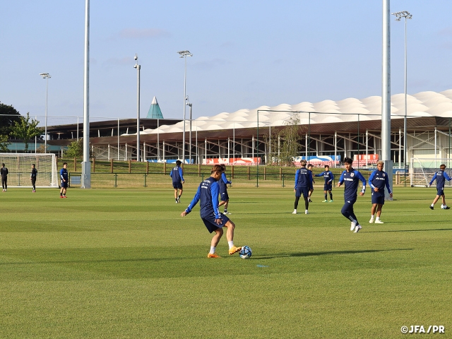 長時間の移動を経て5日(月)にセントジョージズパークに到着したチームに、現地イングランドで松岡大起選手、小田裕太郎選手、鈴木唯人選手も合流し、全23選手が揃いました。現地時間18:00からトレーニングを実施して、選手たちは長旅の疲労を取り除くことに重点を置いて、翌日からの本格的なトレーニングに備えました。