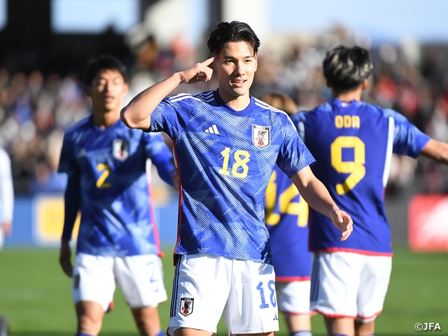 まずは(U-22日本代表に)選出されたことに感謝していますし、試合で起用してくれた大岩監督には感謝しています。出たら絶対に(ゴールを)決めたいと思っていました。前半を見ていて、相手の両センターバックが広がっていて、スペースが空いていると感じていました。みんな上手い選手たちなので、そこに走り込んだらボールが出てくるだろうと信じて走りました。シュートには自信がありました。FWの仕事は点を取ることなので、これからも謙虚に頑張り続けていきたいです。
