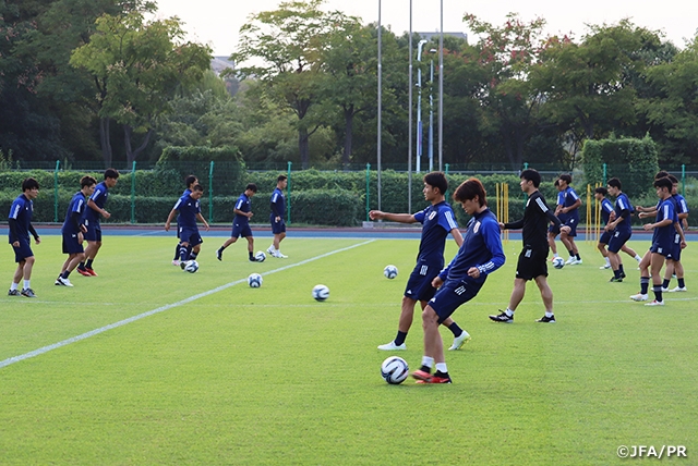 第19回アジア競技大会(2022/杭州)を戦うU-22日本代表は9月27日(水)、中国の杭州市内でラウンド16のU-24ミャンマー代表戦に向けて前日練習を行いました。