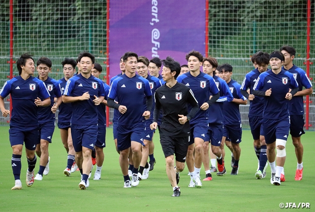第19回アジア競技大会(2022/杭州)を戦うU-22日本代表は9月30日(土)、中国の杭州市内で準々決勝のU-24朝鮮民主主義人民共和国代表戦に向けて前日練習を行いました。
