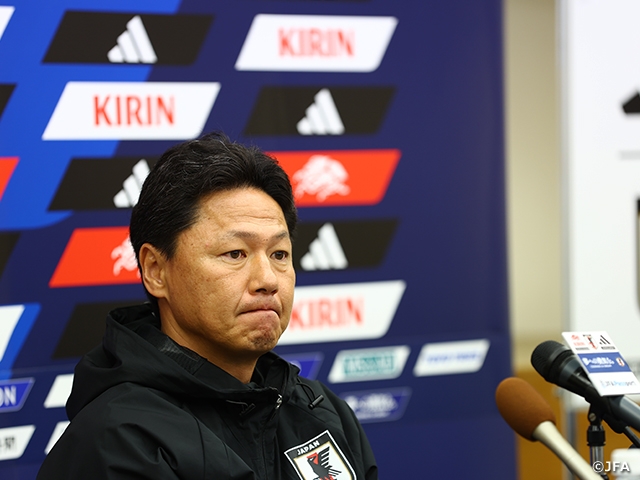 今回の試合は、静岡県静岡市清水区出身の大岩監督にとって地元での一戦となります。静岡にゆかりのある選手たちも選出されているため、大岩監督は「あの清商(清水市立商業高校、現・静岡市立清水桜が丘高校)にいた大岩か、と思い出していただき、スタジアムに来られるのであれば、ぜひ来てもらいたいです。鈴木唯人(ブレンビーIF/デンマーク)、鈴木海音(ジュビロ磐田)、三戸舜介(アルビレックス新潟)、植中朝日(横浜F・マリノス)、松村優太(鹿島アントラーズ)となじみある選手もいるので興味を持ってもらいたい。それを裏切らないプレーを見せなければいけないので、その責任を感じています」と静岡のファン・サポーターにメッセージを送りました。