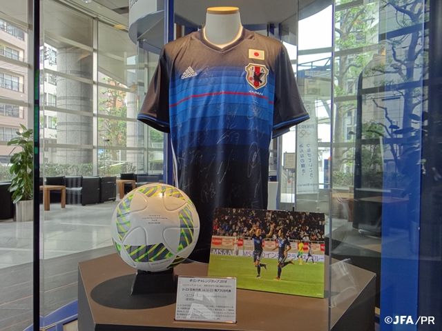 キリンチャレンジカップ2016 U-23日本代表 vs U-23南アフリカ代表、サイン入りユニフォームと使用球を展示