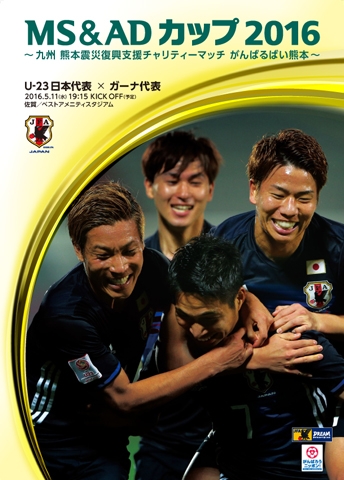 『MS&ADカップ2016 ~九州 熊本震災復興支援チャリティーマッチ がんばるばい熊本~U-23日本代表 対 ガーナ代表 オフィシャルプログラム』、 本日、試合会場のベストアメニティスタジアムで販売