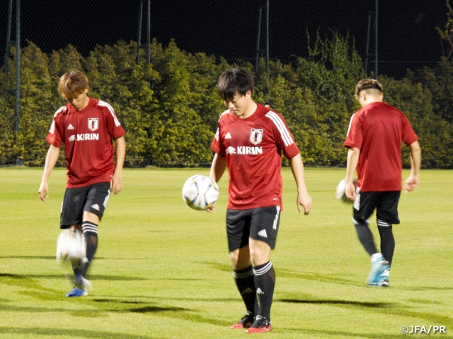気温は19:00時点で27℃。MF相馬勇紀選手が「そんなに暑さは感じない」と話したように、日が落ちていると過ごしやいです。とはいえ日本とは逆の気候状況。一週間後の初戦に向けて、コンディションを高め、連携連動のために互いの動きを合わせると同時に、暑熱対策も講じていきます。