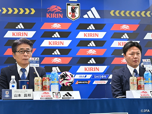 日本サッカー協会(JFA)は3月15日(金)、日本国内で行われる国際親善試合2試合に向けたU-23日本代表メンバー26人を発表し、山本昌邦JFAナショナルチームダイレクターと大岩剛U-23日本代表監督がJFAハウスで会見を行いました。