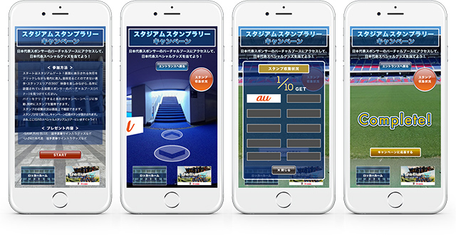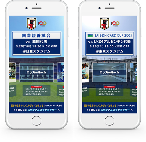 普段見ることのできない空間をXRでお届け!スマートフォン向けアプリ「au XR Door」を通じて、360度を見渡せるスタジアム空間のXR体験や、日本代表スポンサーのバーチャルブースを周るスタジアムスタンプラリーに参加できます。バーチャルブースをすべて周ると、日本代表選手サイン入りスペシャルグッズが抽選で当たります。なお試合開催に先立ち、360度カメラで撮影した過去の日本代表のスペシャル映像などを3月18日(木)から楽しむことができます。今すぐアプリをダウンロードして、新しい応援を体験してみよう!