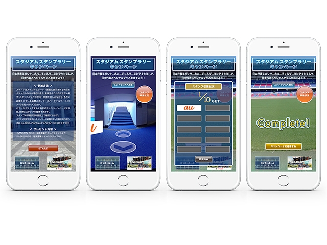スタジアム内の選手やスタッフのエリアに設置されたサッカー日本代表スポンサー各社のバーチャルブースに訪問できます。各ブースを訪れると獲得できるスタンプをすべて揃えると、日本代表スペシャルグッズが当たるキャンペーンに応募できます。