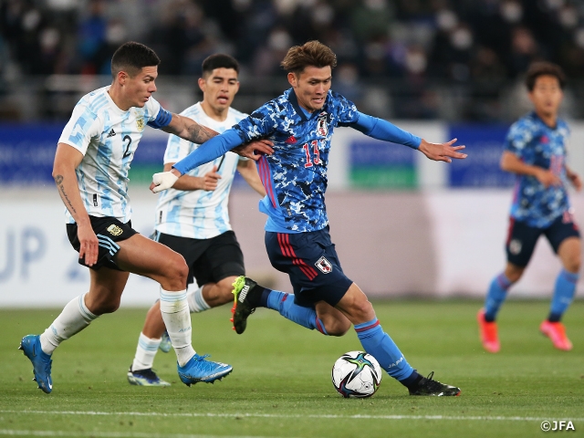 U-24日本代表は3月26日(金)、東京/東京スタジアムで開催されたSAISON CARD CUP 2021でU-24アルゼンチン代表と対戦。前半に失点を許す苦しい展開となったなか、後半はボールを保持しながら攻め込んだものの、あと一歩のところで得点を決めることができずに0-1の敗戦を喫しました。