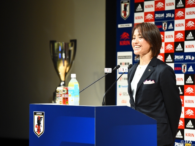 なでしこジャパンは、金メダル獲得を目標に掲げています。アメリカ遠征や国内での徹底した強化で、しっかり細部にわたるまで準備をして臨みたいと思います。秋にはWEリーグが開幕します。代表チームとWEリーグを女子サッカー発展の両輪と捉えて、オリンピックでしっかりと成果を挙げて、WEリーグの良いスタートとなり、ワールドカップ予選のアジアカップへ向けて良い流れを作っていきたい。女子サッカーが大きく発展できる契機となる一年としていきたいと思っています。