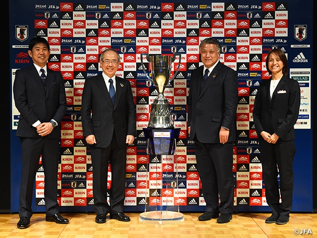 来年はJFA創立100周年の年で、ぜひ強い日本を世界に発信したいと思っています。SAMURAI BLUEはカタール大会へ向けて、まずアジア2次予選で圧倒的な力を見せつけ、9月からの最終予選でアジアNO1の力を見せたい。そこへ向けてキリンチャレンジカップでチーム力を向上させて進みたいと思っています。U-24日本代表はぜひとも念願の金メダルを獲得したいですし、来年のオリンピックで活躍した選手がワールドカップ最終予選で日本代表の力になれるようにしたいと思っています。