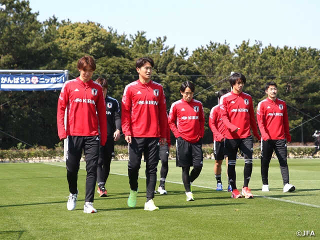 この日は午前中に千葉市内でトレーニングを行い、前日の試合のスターティングメンバーは軽いジョギングなどでコンディションを整え、それ以外の選手たちはパス&コントロール、4対4+フリーマンなどで第2戦に向けてトレーニングを行いました。初戦は出場停止(※)だったMF田中碧選手も精力的に動き、いい感触を得ていました。
