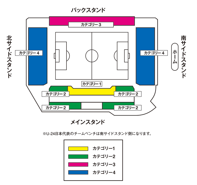 - U-24日本代表のチームベンチは南サイドスタンド側になります。