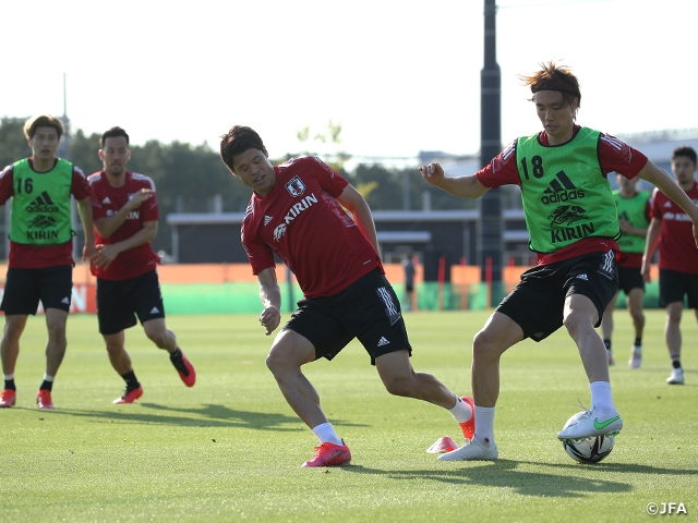 また今回はオリンピックで認められているオーバーエイジ枠の選手として、DF吉田麻也選手、酒井宏樹選手、MF遠藤航選手の3選手が初めて合流したほか、3月の代表活動ではSAMURAI BLUEでプレーしていたDF冨安健洋選手も参加。SAMURAI BLUEの森保一監督は、「オリンピックのメンバー選考の場であり、同時にオーバーエイジを含めたチームでの強化の場と考えている」と今回の活動を位置付けており、選手たちには「選ばれるために、これまで積み上げてきたものを全て6月の活動で発揮してほしい」とも表明。オリンピックメンバーの18名を選ぶための最終選考でもあることを明らかにしています。