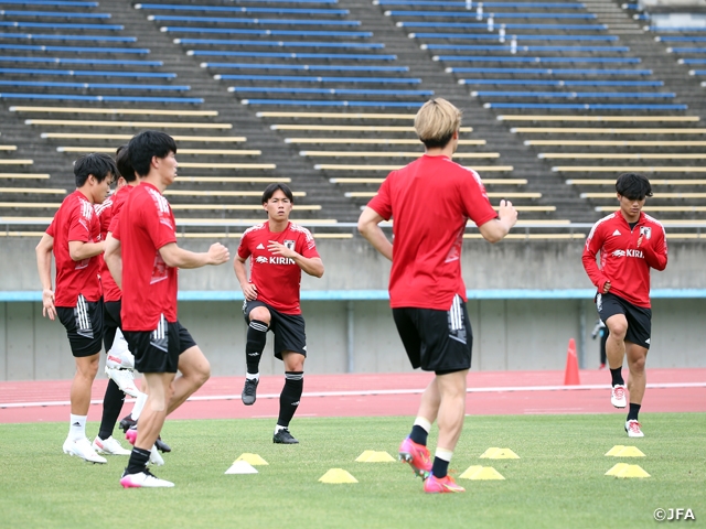 7日からは、12日(土)のジャマイカ代表戦に向けて準備を進めます。ガーナ戦後に横内監督がロッカールームで伝えたように、ここから「積み下げるのではなく、チームを積み上げていく」作業に入ります。最終メンバーの選考がありながらも、選手たちはチームの成熟度をいかに高めるかにフォーカスしています。オリンピックを経験し、SAMURAI BLUEでも実績十分なオーバーエイジトリオがピッチ内外で目を配るなか、刺激を受けた選手たちがさらに成長して高め合い、どんな化学反応を見せるか。チームにはいま、いい緊張感と高揚感が漂っています。