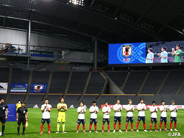試合前には新型コロナウイルス感染症などの治療にあたる医療従事者やエッセンシャルワーカーの方々をはじめとする多くの方々に対して拍手を送り、あらためて感謝の意を伝えました。また日本サッカー協会ではこの試合の行われた3日から、北海道における医療活動などに対する支援を目的としたクラウドファンディングによる募金活動を開始しました。