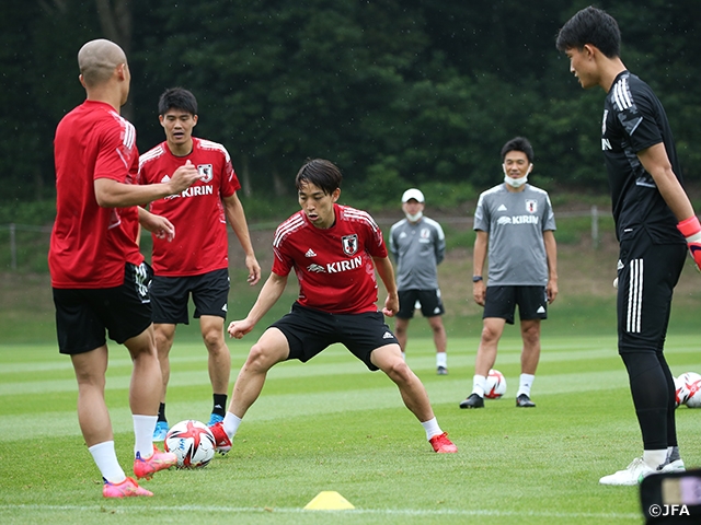 静岡県内でトレーニングキャンプを行っているU-24日本代表は9日(金)、雨がぱらつくなか、午後4時からトレーニングを行いました。