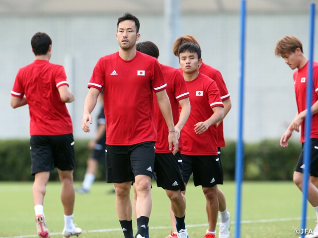 中2日で試合が続くことから、戦術的な確認のみとし、全体練習は短めに切り上げました。最後は監督の言葉を継いで吉田麻也キャプテンが「勝ちましょう」と声をかけ、全選手・スタッフで円陣を締めました。