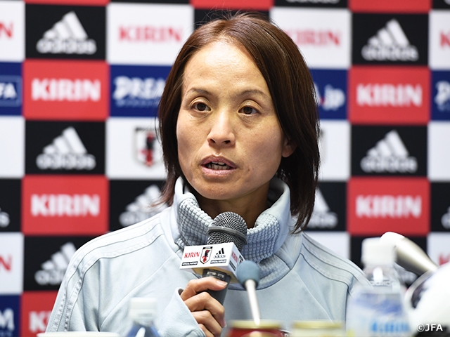 今回の合宿では、身体が大きく速い相手に対しする練習を多く積んできました。明日は一人ひとりがしっかり戦い、いい結果を残したいと思います。自分が若い時に周囲に生かしてもらっていたように、周囲を生かすプレーも増やしていきたいです。今年はアジアの大会で2回優勝して少しは自信になりましたが、内容が伴っていたかというと自分はそうは思いません。選手は満足できていないと思います。FIFA女子ワールドカップまで半年くらいしかないので、明日のような試合を大切にしていきたいです。