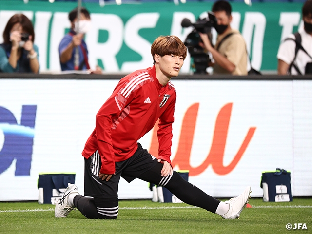 サウジアラビア戦では左からクロスをどんどん入れるように言われて交代出場しましたが、あまり時間もなく、カオスの展開だったので、もう少し早い時間だったらもう少しプレーできたかと思います。オーストラリアはチームとして整理されていて、前線が強力で得点も多く、力があると思います。自分が試合に出たら、チームとして安定感をもたらしたい。自分の特長の後ろからのビルドアップや攻撃参加にも意識して取り組んできましたし、オリンピックから掲げてきた自分の課題への成果もしっかり披露できればと思っています。攻撃参加ではいつ上がるべきか、中か外かを判断しながらプレーしたい。1-0で勝てばいいので、90分通してしっかり1点とって勝てるかという戦い方もあるので、焦る必要はないと思います。この先は、ワールドカップ出場が最大のテーマです。そこにつながるために今勝たないといけないですし、結果は全力でやった先にきます。今できることを最大限やることが先につながると信じて、今を大事にしたいと思っています。