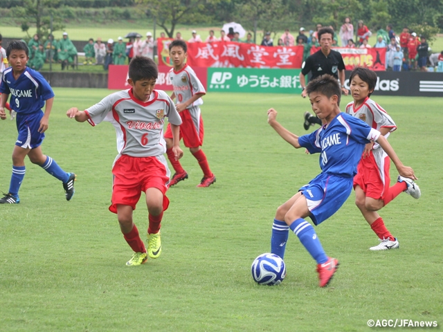 2組で3位につけていた田宮ビクトリーサッカー少年団(徳島)は、同組首位のACジュニオール(宮城)と対戦しました。少ないタッチでボールをつなぎ、前半のうちに先制。24分に追いつかれましたが、その2分後に西野太陽選手が勝ち越しゴールを決め、2次ラウンド進出をつかみ取りました。