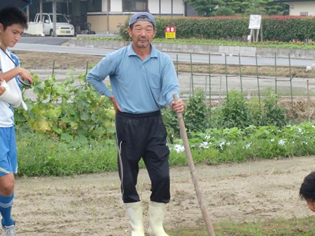 田植えの後にはアカデミーを代表して、4期生の一怜哉(UKI-C.FC)から徳永さんにお礼の言葉を。