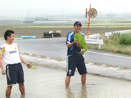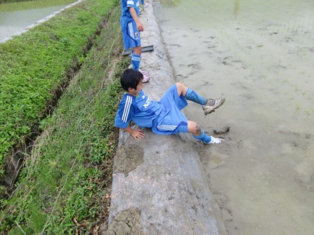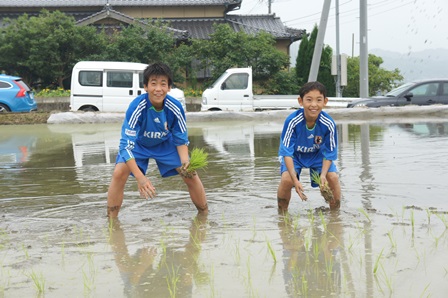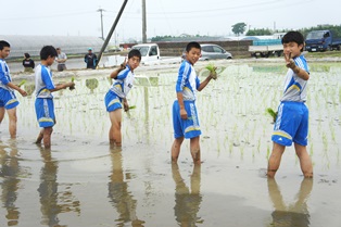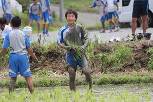 数名経験者はいるものの、ほとんどの選手が初体験の田植えとなった6期生。